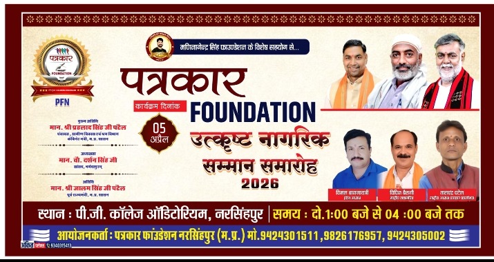 पत्रकार फाउंडेशन नरसिंहपुर मप्र ने मणिनागेंद्र सिंह फाउंडेशन के विशेष सहयोग से उत्कृष्ट नागरिक सम्मान समारोह का आयोजन