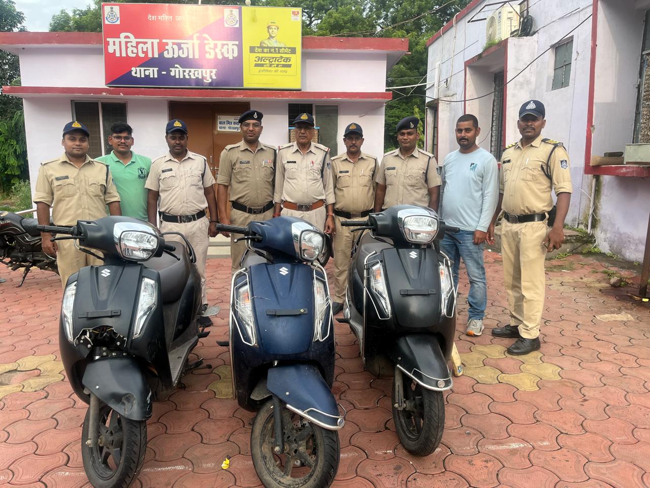 : थाना गोरखपुर पुलिस की कार्यवाही, वाहन चुराने वाले 4 विधि विरूद्ध बालक सहित 6 गिरफ्तार, चुराई हुई 3 एक्सिस स्कूटी एवं मोबाईल कीमती 2 लाख रूपये का जप्त