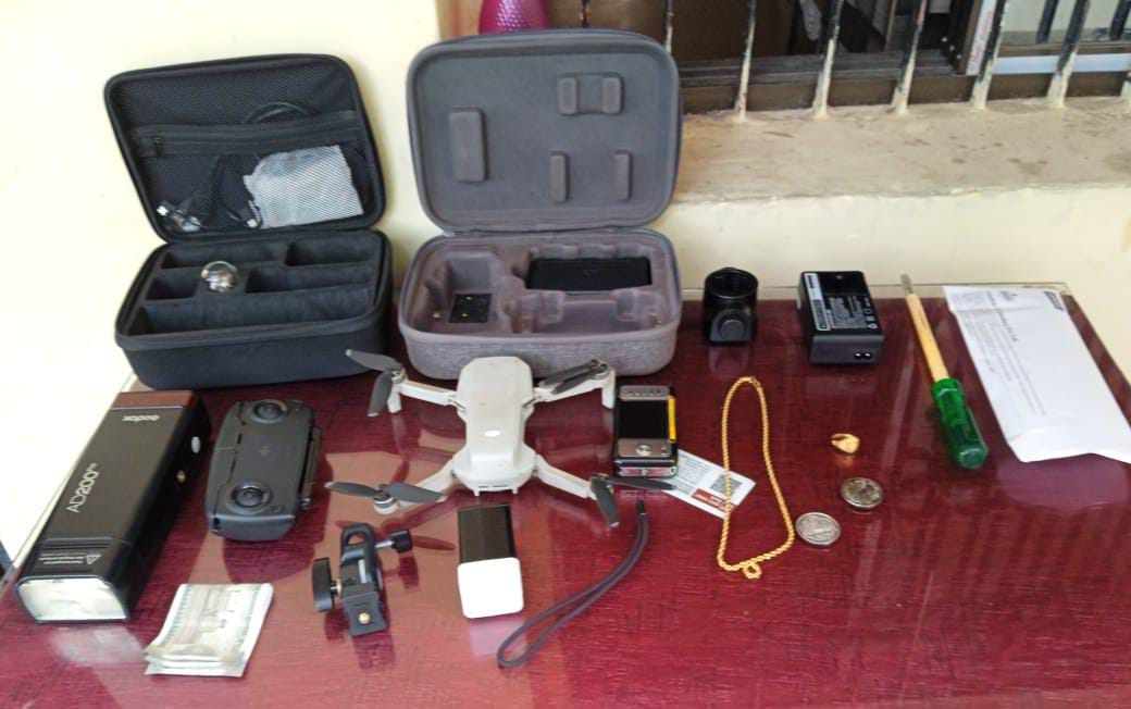 दुकान के दरवाजे का कुंदा एवं सूने मकान का ताला तोडकर चोरी करने वाले आरोपी पकड़े गये, चुराया हुआ ड्रोन कैमरा, वीडियो कैमरा, एलईडी लाईट, सोने, चांदी के जेवर कीमती लगभग 3 लाख रूपये के जप्त