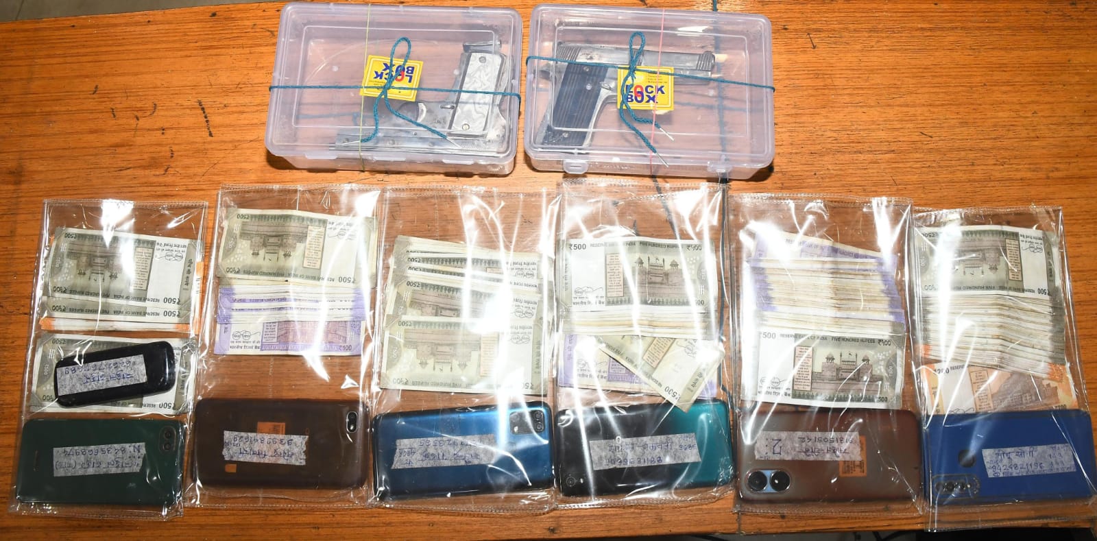 छीनी हुई पूरी रकम नगद 1 लाख 28 हजार रूपये तथा घटना में प्रयुक्त 3 दुपहिया वाहन, 2 पिस्टल, 2 जिंदा कारतूस, एक खाली खोखा एवं 7 मोबाईल जप्त