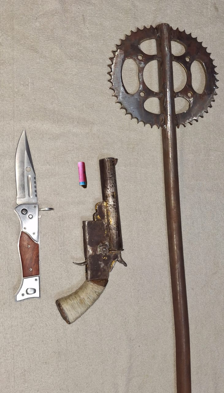 : आरोपी अवैध शस्त्र सहित पकड़ा गया,1 कट्टा, 1 कारतूस, 1 चाकू, 1 लोहे का हथ्ता जप्त