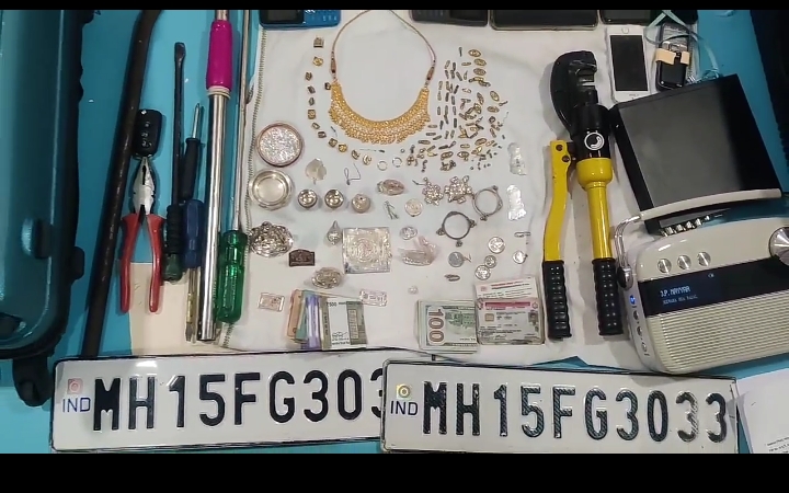 अपराध जिनमें गिरफ्तारी की गयीथाना गोराबजार अपराध क्र. 154/25 धारा 331(4),305(ए) बीएनएस तथाथाना लार्डगंज के अपराध क्रमांक 292/25 धारा 303(2) बीएनएस *नाम पता गिरफ्तार आरोपी-*1- रोहन संजय भोले पिता संजय भोले महार उम्र 38 वर्ष निवासी जय प्रकाश सोसाइटी विद्यानगरी सोसाइटी विद्यानगरी थाना उपनगर जिला नासिक महाराष्ट्र,2-ऋषिकेष मधुकर काले पिता मधुकर काले मराठा उम्र 29 वर्ष निवासी पदमनी सोसाइटी गंदर्भ नगरी थाना उपनगर जिला नासिक महाराष्ट्र जप्ती- चुराये हुये सोने चांदी जेवर, चांदी की मूर्तिया, नगद 2750 रूपये तथा घटना मे प्रयुक्त स्कोडा कार, हाईड्रोलिक कटर, रॉड, पुलिस अधीक्षक जबलपुर श्री सम्पत उपाध्याय (भा.पु.से.) द्वारा जिले मंे पदस्थ समस्त राजपत्रित अधिकारियों एवं थाना प्रभारियों को लूट, झपटमारी, नकबजनी, वाहन चोरी की घटनाआंे पर अंकुश लगाने हेतु जेल से रिहा हुये सम्पत्ति सम्बंधी अपराधियों एवं पूर्व में पकडे गए संपत्ति संबंधी अपराधियों से सघन पूछताछ एवं उनकी गुजर बसर की जांच तथा घटित हुई चोरी एवं नकबजनी में आरोपियों की पतासाजी करते हुए चोरी गए मशरूका की बरामदगी हेतु आदेशित किया गया है।आदेश के परिपालन में अतिरिक्त पुलिस अधीक्षक श्री आनंद कलादगी (भा.पु.से.), अतिक्ति पुलिस अधीक्षक जोन 2 श्री समर वर्मा, अतिरिक्त पुलिस अधीक्षक यातायात/अपराध श्रीमती सोनाली दुबे, नगर पुलिस अधीक्षक कोतवाली श्री रितेश कुमार शिव, नगर पुलिस अधीक्षक केण्ट श्री उदयभान बागरी के मार्ग दर्शन में थाना प्रभारी गोराबजार श्री रमन सिंह मरकाम एवं थाना प्रभारी लार्डगंज श्री नवल सिंह आर्य के नेतत्व में गठित टीम द्वारा 2 नकबजनियो का खुलासा करते हुये 2 चोरों को गिरफ्तार कर चुराये हुये चुराये हुये सोने चांदी जेवर, चांदी की मूर्तिया, नगद 2750 रूपये तथा घटना मे प्रयुक्त स्कोडा कार, हाईड्रोलिक कटर आदि जप्त किये गये है। *घटना क्रमांक 1-* थाना गोराबजार में दिनांक 17-5-25 की शुभान सिंह राजपूत उम्र 60 वर्ष निवासी झग्गर फार्म गोराबजार ने रिपोर्ट दर्ज करायी कि वह रेल्वे से रिटायर्ड है दिनांक 17-5-25 को 10-30 बजे घर में लोहे गेट मे ताला लगाकर त्रिपुर सुंदरी मंदिर भेड़ाधाट दर्शन करने पत्नी पार्वती राउत के साथ कार से गया था दर्शन करके दोपहर लगभग 3-10 बजे घर आया देखा लोहे के गेट मे ताला नही था मकान के प्रथम दरवाजा में भी तला नहीं था बरामदा में एक बांश की लाठी रखी थी लाठी को निकालकर दीवाल में लगा सीसीटीव्ही कैमरा को लाठी से तोड़ा और मकान के अंदर प्रवेश कर फ्रिज के पास रख कार्बा (रेडियो) कीमती लगभग 2 हजार रूपये का नहीं था कमरे मे डबल बेड में रखा सूटकेश बाहर निकला हुआ था तथा आलमारी का लाकर टूटा हुआ था सामान बिखरा पड़ा था बहू रितिका रावत के जेवर सोने का मंगलसूत्र, हार, नहीं था कोई अज्ञात