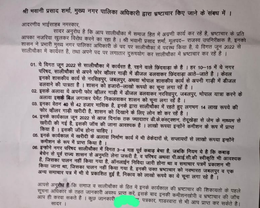 : सालीचौका नगर परिषद में कुछ सही नहीं चल रहा जिम्मेदार कब देंगे ध्यान सीएमओ के ख़िलाफ़ मिली भ्रष्टाचार की शिकायत