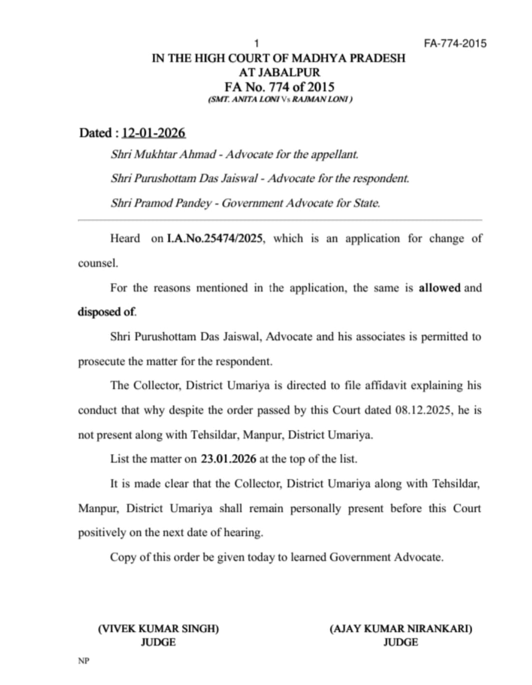 अब देखना होगा कि 23 जनवरी को उच्च न्यायालय के समक्ष कलेक्टर उमरिया एवं तहसीलदार मानपुर हाजिर होते हैं या न्यायालय को वारंट जारी करना पड़ता है।