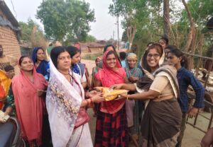ओम श्री जन कल्याण विकास संस्थान द्वारा जरूरत मंद महिलाओं को वस्त्र और चांवल का वितरण किया