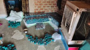 (1) छः प्लास्टिक की बोरियों में सुलती से बने 4,395 नग सुपर ATOM बम,