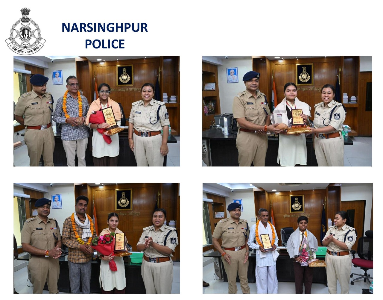 : नरसिंहपुर पुलिस द्वारा यू.पी.एस.सी. में चयनित एवं 10 वीं बोर्ड की परीक्षाओं में मेरिट स्थान प्राप्त करने वाले छात्र-छात्राओं को सम्मानित किया गया,