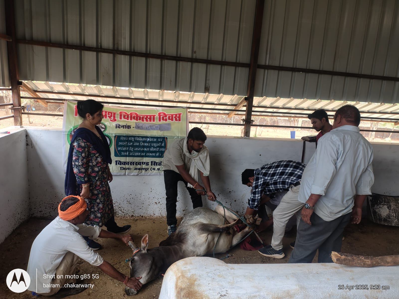 गोसलपुर। विश्व पशु चिकित्सा दिवस के उपलक्ष्य में सिहोरा तहसील अंतगर्त विद्यासागर सेवाश्रम गौशाला गोसलपुर में विकास खंड पशु चिकित्सा अधिकारी डॉ नीता मनोचा के मार्गदर्शन में विभाग द्वारा विशेष शिविर का आयोजन किया गया।शिविर में गौशाला मे उपलब्ध गोवंश को गर्मी एवं बारिश के रोगों से बचाव हेतु एच एस एवं बीक्यूके टीके लगाए गए।छोटे बच्चों को पटार की दवा पिलाई गई एवम् गोशाला में उपलब्ध निकृष्ट नाटो का बधियाकरण भी किया गया।इस अवसर पर डॉ अभिषेक शुक्ला के साथ साथ आशीष ठाकुर पंकज पटेल शशांक दुबे गजेंद्र यादव रतन पटेल राजभान राजपूत एवं शिवकुमार काछी द्वारा उक्त कार्यों का संपादन किया गया।