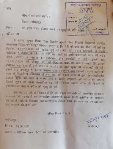 : डॉक्टर पर गलत इलाज़ के गंभीर आरोप के बाद भी स्वास्थ्य विभाग मौन , लिलवानी निवासी ग्रामीण ने कलेक्टर की जनसुनवाई में लगातार दो बार निष्पक्ष जांच की लगाई गुहार गरीब की आवाज कब सुनोगे श्रीमान,