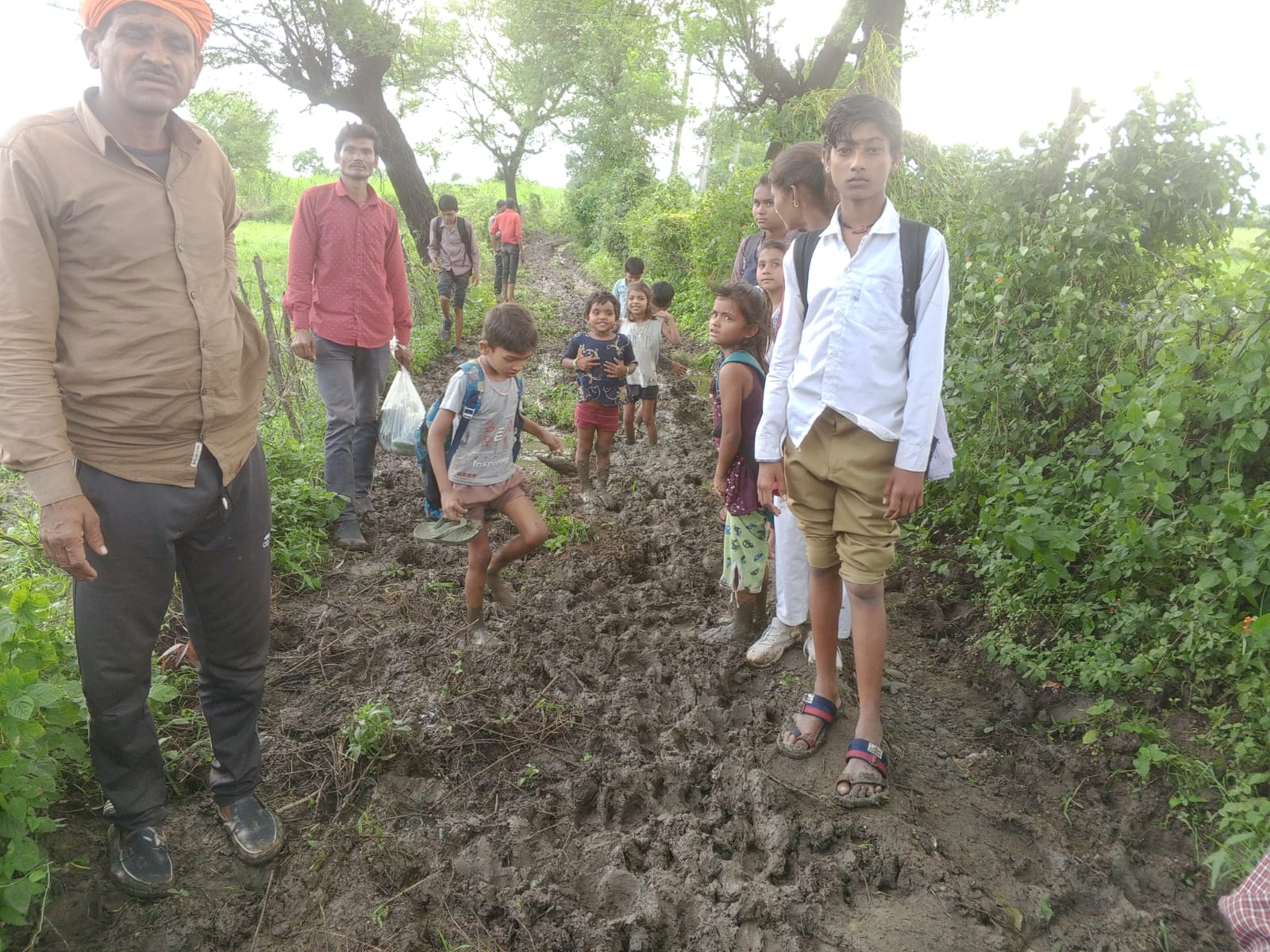 : तेंदूखेड़ा,बंधी ग्राम के लोग बिकास को देखने तरस रहे है,आप भी देख लो छोटे छोटे बच्चे स्कूल जाते हुए भरी खबना में जिम्मेदारों ध्यान दो