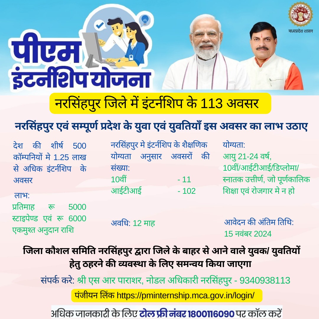 : पीएम इंटर्नशिप योजना अंतर्गत युवाओं को देश की 500 कंपनियों में इंटर्नशिप प्रदान करने के उद्देश्य से पंजीयन के लिए ज़िले के चयनित कॉलेज और आईटीआई में शिविरों का आयोजन हो रहा है।