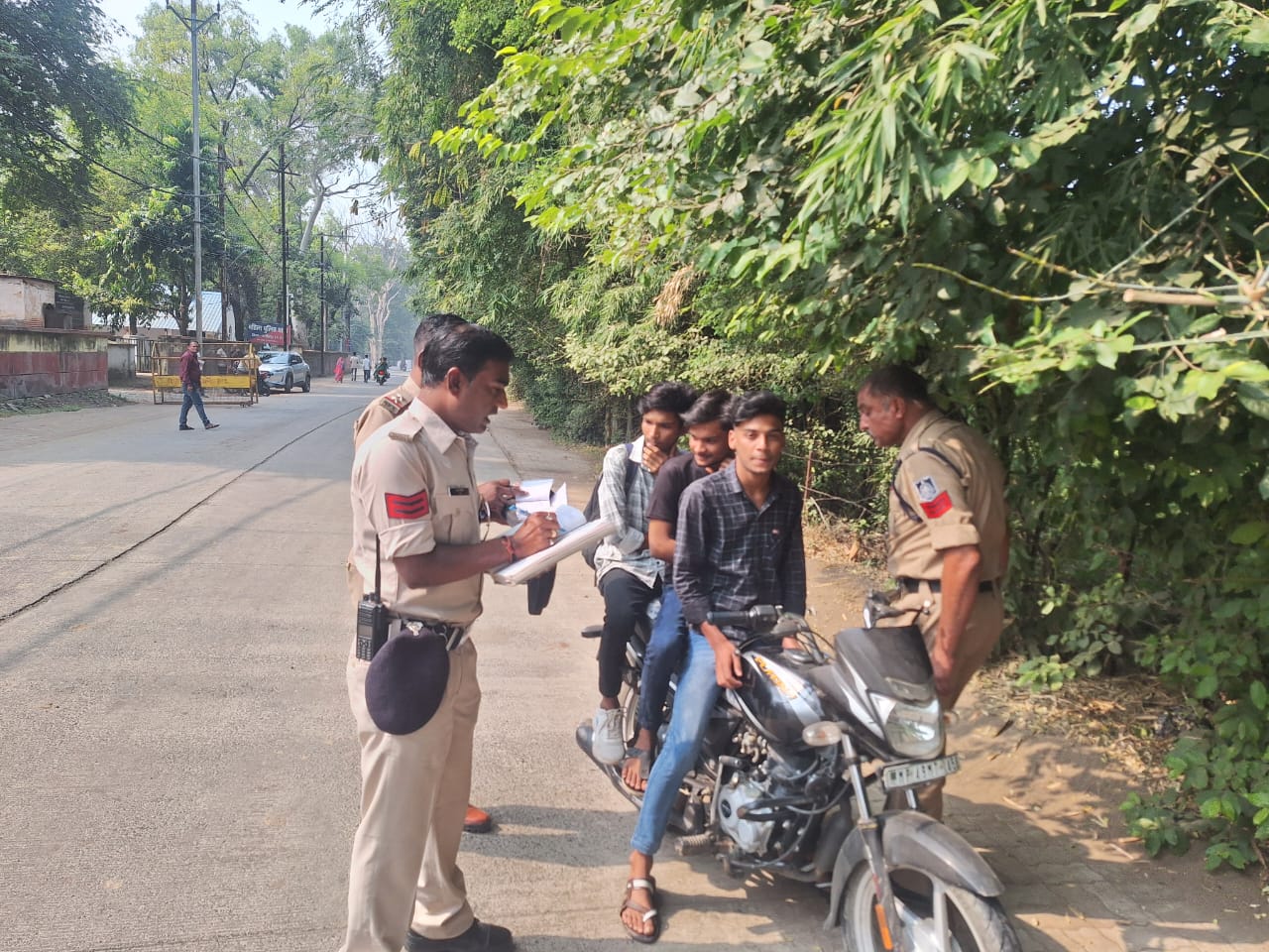 : नरसिंहपुर दो पहिया वाहन में 3 सवारी बैठने वाले 12 चालकों एवं तेज आबाज सायलेंसर वाले 03 वाहनों के विरूद्ध की गयी चालानी कार्यवाही।