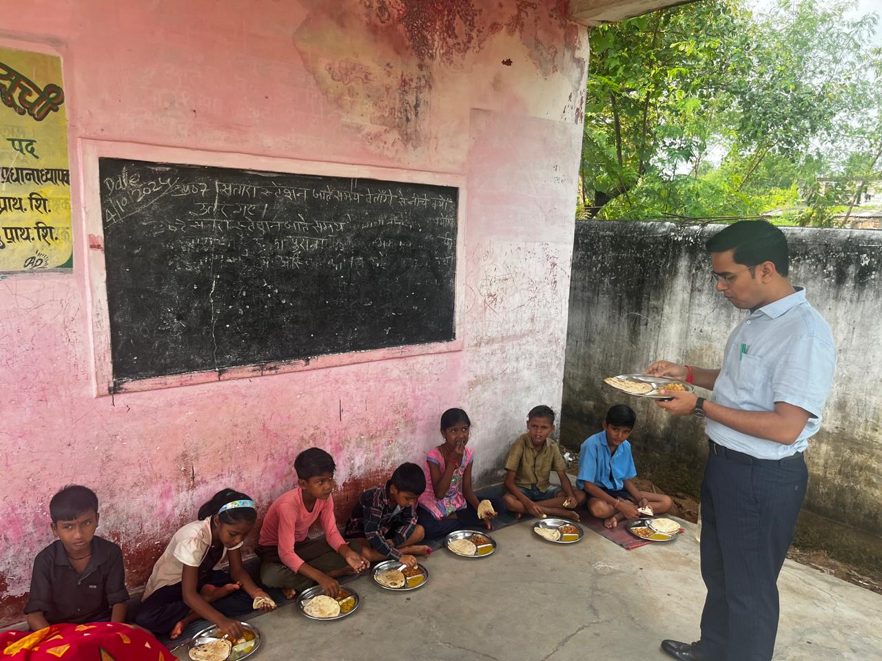 : जिला पंचायत सिईओ ने बच्चो के साथ बैठकर किया मध्यान्ह भोजन स्वयं चखकर की गुणवत्ता की जांच