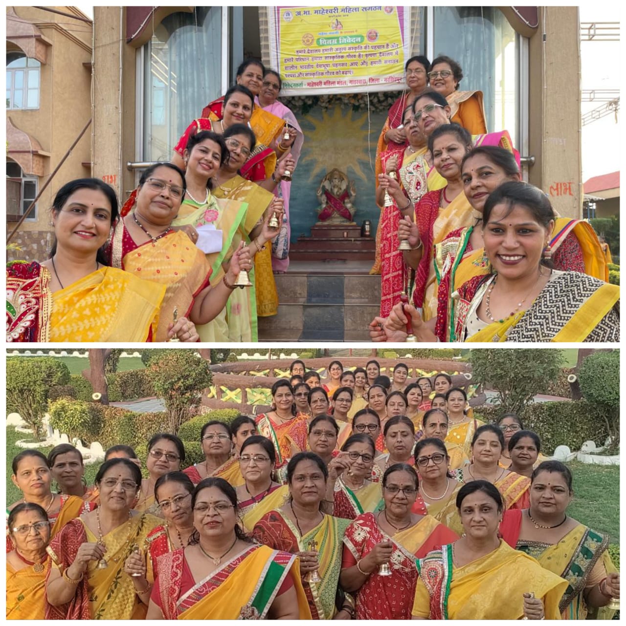 आगामी आने वाले पर्व महेश नवमी के उपलक्ष में माहेश्वरी महिला संगठन के द्वारा राष्ट्रीय स्तर पर भारतीय परिधान *साड़ी वाकेथान* देशभर में एक साथ आयोजित किया गया, जिसमें स्थानीय माहेश्वरी समाज की सभी महिलाओं द्वारा पीले रंग की साड़ी पर लाल चुनरी का दुपट्टा पहनकर घंटी की सकारात्मक ध्वनि के साथ मुख्य अतिथि व आमंत्रित अतिथियों के साथ क्रमबद्ध रूप से मंदिर में प्रवेश किया गया।मंदिर में श्री गणेश जी का पूजन कर मुख्य अतिथि द्वारा बोर्ड का अनावरण किया गया। इसके द्वारा यह संदेश दिया गया कि हमारे देवालय हमारी अतुल्य संस्कृति की पहचान है और हमारे परिधान हमारा सांस्कृतिक गौरव है।मुख्य अतिथि भूतपूर्व *विधायक साधना जी स्थापक* भी पीली साड़ी व लाल चुनरी का दुपट्टा पहनकर इस आयोजन में शामिल हुई व उनके द्वारा यह बताया गया की साड़ी एक ऐसा परिधान है जिसमें मां के आंचल की महिमा छुपी हुई है, आज वह आंचल कहीं विलुप्त होता जा रहा है। इसके साथ ही उन्होंने राष्ट्रीय माहेश्वरी महिला संगठन को भी साधुवाद व धन्यवाद दिया कि जिनके द्वारा यह एक अच्छी पहल की गई और सभी का ध्यान इस ओर आकर्षित किया गया है।इसके साथ ही इस आयोजन में आमंत्रित अतिथि प्रशासनिक अधिकारी अकाउंट ऑफिसर जनपद पंचायत चीचली श्रीमती मीना दुबे, आदित्य पब्लिक स्कूल की प्रिंसिपल श्रीमती लता काबरा, पूर्व प्रदेश अध्यक्ष श्रीमती मंगला जी काबरा, नर्मदा संभाग सांस्कृतिक सचिव श्रीमती स्नेहा जी काबरा, प्रादेशिक सहसंयोजीकाये अरुणा जी काबरा, सरिता जी पलोड, दीपा जी काबरा, छत्रछाया संयोजिका गीतिका जी काबरा, जिला अध्यक्ष सुधा पलोड, जिला सचिव मधु मालानी, स्थानीय अध्यक्ष अनुराधा काबरा, स्थानीय सचिव लक्ष्मी काबरा के साथ सभी सामाजिक महिलाओं की उपस्थिति रही।मुख्य अतिथि व सभी आमंत्रित अतिथियों को उपरना व लिप्पन कलाकृति की नेम प्लेट देकर माहेश्वरी महिला संगठन द्वारा सम्मानित किया गया।अंत में सभी सामाजिक महिलाओं द्वारा यह शपथ ली गई की सभी धार्मिक स्थलों, सामाजिक कार्यक्रमों व पर्व पर साड़ी पहन कर अपनी संस्कृति का सम्मान करेंगे और इसे अगली पीढ़ी तक पहुंचाने का प्रयास करेंगे।