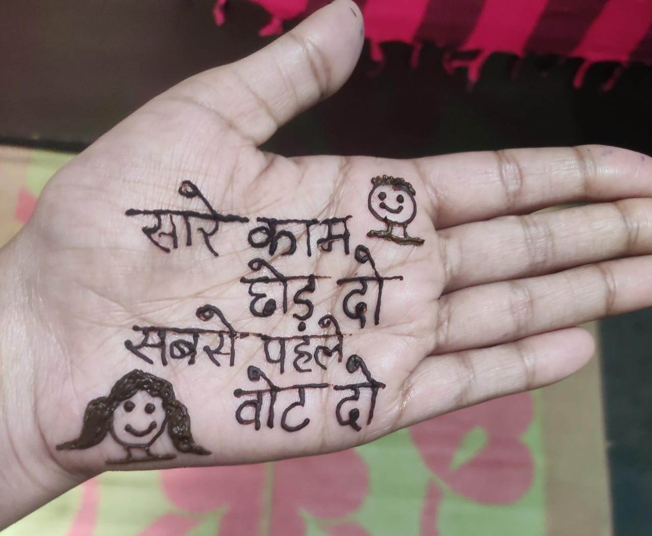 चल री सखी कार्यक्रम के तहत महिला मतदाताओं को कर रही प्रेरितमहिला मतदाताओं को मतदान के प्रति जागरूक करने के उद्देश्य से जिला प्रशासन द्वारा चल री सखी कार्यक्रम का आयोजन किया जा रहा है। चल री सखी में आंगनबाड़ी, स्वास्थ्य व आशा कार्यकर्ता और स्वसहायता समूह की महिलाओं को शामिल किया गया है। ये महिलायें गांव- गांव और वार्डों में बनाये गये मतदान केन्द्रों में जाकर महिला मतदाताओं को मतदान के प्रति जागरूक कर रही हैं। ग्रामीण महिलाओं को मेहंदी, रंगोली, गीत- संगीत, रैली आदि के माध्यम से प्रेरित कर रही हैं। गाडरवारा विधानसभा क्षेत्र के ग्राम खैरी में बनाये गये मतदान केन्द्र क्रमांक 54 में चल री सखी कार्यक्रम का आयोजन किया गया। इस दौरान महिलाओं ने हाथों मेहंदी लगाकर मतदाताओं को प्रेरक संदेश दिया। महिलाओं ने अपने हाथों में स्लोगन लिखवाकर मतदाताओं को जागरूक किया।उल्लेखनीय है कि लोकसभा निर्वाचन- 2024 के अंतर्गत भारत निर्वाचन आयोग द्वारा जारी कार्यक्रम के अनुसार जिले में दो चरणों में मतदान होना है, जिसमें संसदीय निर्वाचन क्षेत्र मण्डला के अंतर्गत आने वाली जिले की एक विधानसभा क्षेत्र 118- गोटेगांव में 19 अप्रैल को और नर्मदापुरम संसदीय क्षेत्र के अंतर्गत आने वाली जिले की तीन विधानसभा क्षेत्र 119- नरसिंहपुर, 120- तेंदूखेड़ा व 121- गाडरवारा में 26 अप्रैल को मतदान होना है।