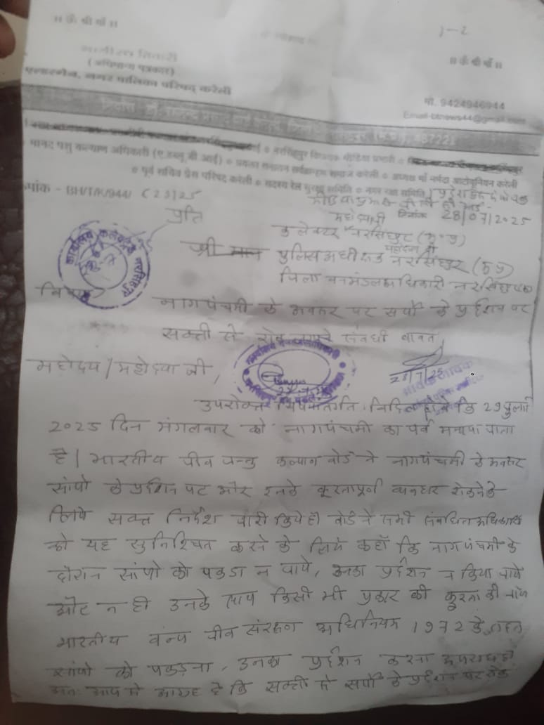 : नागपंचमी को सर्पों के प्रदर्शन को रोक को लगाने पर भारतीय जीव जंतु कल्याण बोर्ड का पत्र