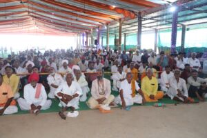 एक वर्षीय गोकृपा कथा के उपसंहार उत्सव के एकादश दिवस पर राजस्थान एवं मध्यप्रदेश के नवलगढ़ के झुंझुनू से विनीता पुरोहित,परिवार, बाबुल्दा के गोभक्त,उज्जैन से गिरीश कुमार, जीवन लता हिमांशु , माया शर्मा,.जोधपुर के गौ भक्त मदनलाल जांगिड़, रामकिशोर जागिड़,मोतीलाल जांगिड़,रानीवाड़ा जिला जालोर से गो भक्त कैलाश सुदेशा , ओमप्रकाश सुदेशा सपरिवार एवं नागौर माली परिवार ने अपने परिवार की और से सम्पूर्ण विश्व के जन कल्याण के लिए गाजे बाजे के साथ भगवती गोमाता के लिए चुनरी लेकर पधारे और कथा मंच पर विराजित भगवती गोमाता को चुनरी ओढ़ाई एवं गोमाता का पूजन कर स्वामी गोपालानंद सरस्वती महाराज से आशीर्वाद लिया और अंत में सभी ने गो पूजन करके यज्ञशाला की परिक्रमा एवं गोष्ठ में गोसेवा करके सभी ने गोव्रती महाप्रसाद ग्रहण किया।