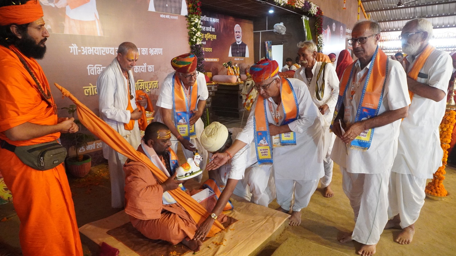 सुसनेर। मध्यप्रदेश के मुख्यमंत्री डॉक्टर मोहन यादव द्वारा मध्य प्रदेश के निराश्रित गोवंश के संरक्षण हेतु सम्पूर्ण मध्यप्रदेश में भारतीय नूतन संवत 2081 से घोषित "गोवंश रक्षा वर्ष" के तहत जनपद पंचायत सुसनेर की समीपस्थ ननोरा, श्यामपुरा, सेमली व सालरिया ग्राम पंचायत की सीमा पर मध्यप्रदेश शासन द्वारा स्थापित एवं श्रीगोधाम महातीर्थ पथमेड़ा द्वारा संचालित विश्व के प्रथम श्री कामधेनु गो अभयारण्य मालवा में चल रहें एक वर्षीय वेदलक्षणा गो आराधना महामहोत्सव के 351 वें दिवस पर स्वामी गोपालानंद सरस्वती महाराज ने बताया कि मध्यप्रदेश के गौसेवक मुख्यमंत्री डॉ.मोहन जी यादव ने विश्व के इस प्रथम गो अभयारण्य में अपना 61 वा जन्मदिवस मनाकर एक मिशाल कायम की है और इससे प्रदेश में गो संरक्षण को बढ़ावा मिलेगा कि एक प्रदेश का मुखिया भगवती गोमाता की पूजन एवं यज्ञ करके गो शाला में अपना जन्मदिवस मना रहें है इससे सनातन परम्परा को बल मिला है ।
