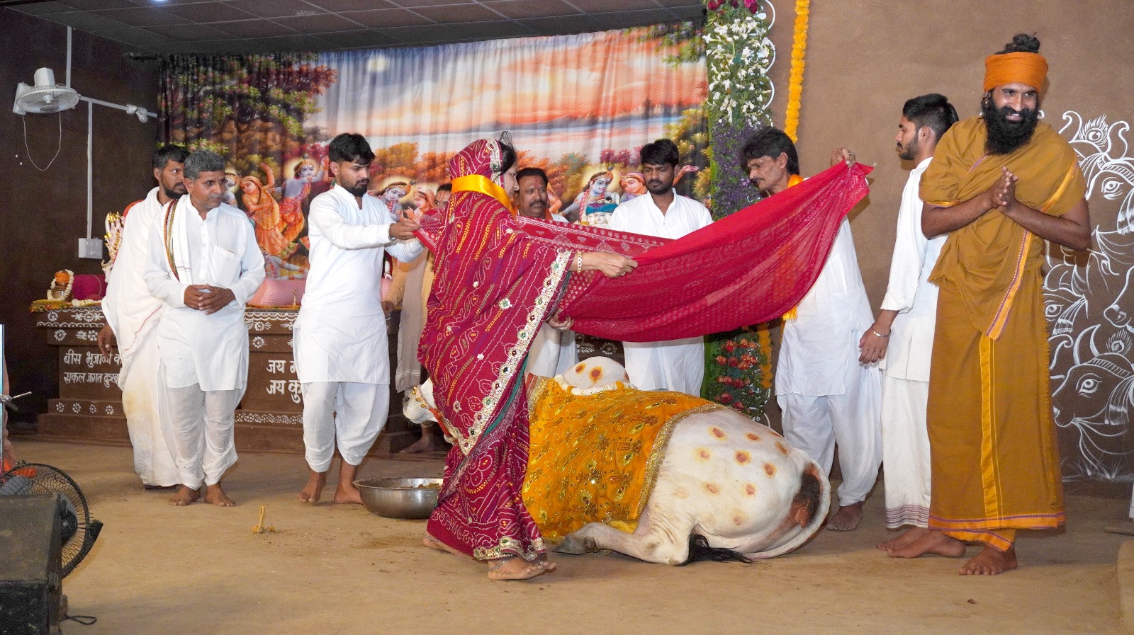 351 वे दिवस पर चुनरी यात्रा राजस्थान एवं मध्यप्रदेश से एक वर्षीय गोकृपा कथा के 349 वें दिवस पर चुनरी यात्रा राजस्थान एवं मध्यप्रदेश के गोभक्त परिवार ने सम्पूर्ण विश्व के जन कल्याण के लिए गाजे बाजे के साथ भगवती गोमाता के लिए चुनरी लेकर पधारे और कथा मंच पर विराजित भगवती गोमाता को चुनरी ओढ़ाई एवं गोमाता का पूजन कर स्वामी गोपालानंद सरस्वती महाराज से आशीर्वाद लिया और अंत में सभी ने गो पूजन करके यज्ञशाला की परिक्रमा एवं गोष्ठ में गोसेवा करके सभी ने गोव्रती महाप्रसाद ग्रहण किया।