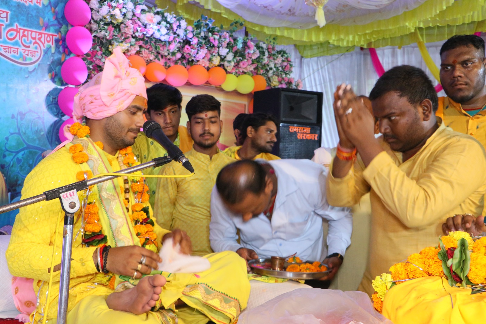: गाडरवारा। नई गल्ला मंडी प्रांगण में हो रही संगीतमय श्रीमद् भागवत कथा का श्रवण कर पुण्य लाभ ले रहे श्रद्धालु